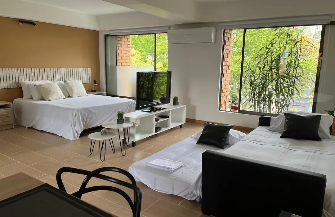Wyposażona kuchnia w obiekcie wyposażono w kuchenkę mikrofalową, lodówkę i przybory kuchenne dla potrzeb gości. Goście mogą delektować się daniami kuchni kolumbijskiej w Burgler, która leży w odległości 5 min spacerem. Stacja metra Poblado znajduje się w odległości 10 min spacerem od obiektu i zapewnia dostęp do popularnych dzielnic Medellínu. Piesza turystyka, kręgle i jazda na rowerze będą dodatkowym atutem.